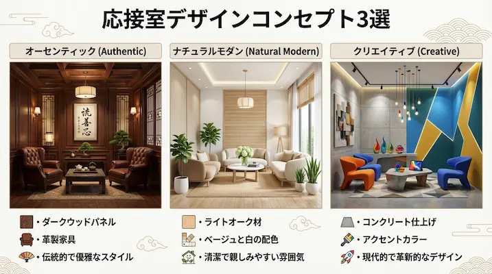 ここからは、応接室の内装でおしゃれな空間を作るための基本コンセプトについて解説していきます。