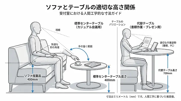 商談を円滑にするソファとテーブルの高さ関係